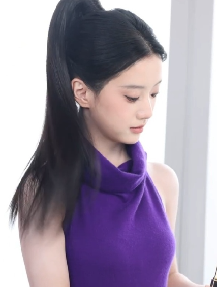 包上恩黑发挂脖露背紫裙,她还是适合黑发!